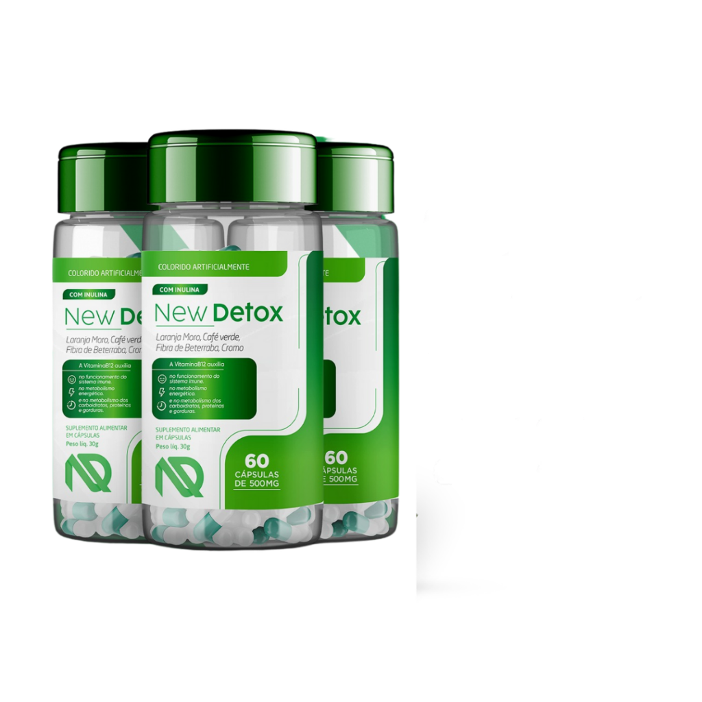 New Detox reúne todos os ingredientes de uma receita na medida certa. Tudo isso feito com tecnologia avançada, que te fará emagrecer muito mais rápido. Você não precisará ter o trabalho de preparar receitas complicadas, nem comprar ingredientes e chás caros e difíceis de encontrar. Você terá tudo pronto. Basta apenas tomar 2 cápsulas por dia e, em poucas semanas, verá o resultado.